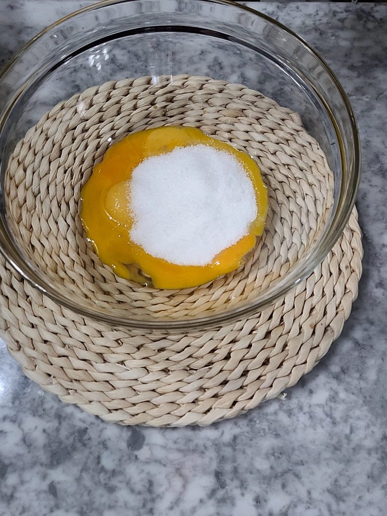 En un bol montad con la batidora eléctrica las yemas con el azúcar hasta obtener una mezcla esponjosa y aireada