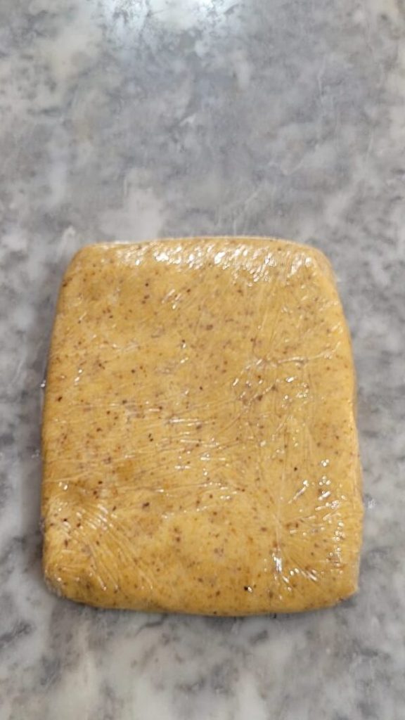 Amasa con las manos hasta obtener un bollo suave y homogéneo. Envuélvelo en film y guárdalo en el frigorífico durante 1 hora