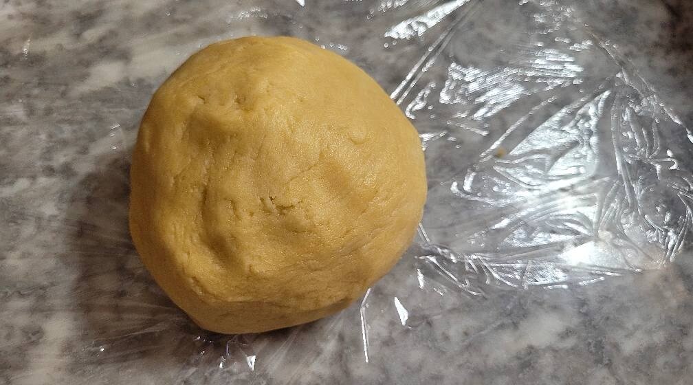 • Amasar hasta obtener un bloque liso. Envolverlo con film transparente y guardarlo en la nevera durante al menos media hora.