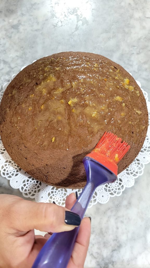 Cocción en Horno de la Tarta de Naranja y Chocolate con Glaseado de Mermelada