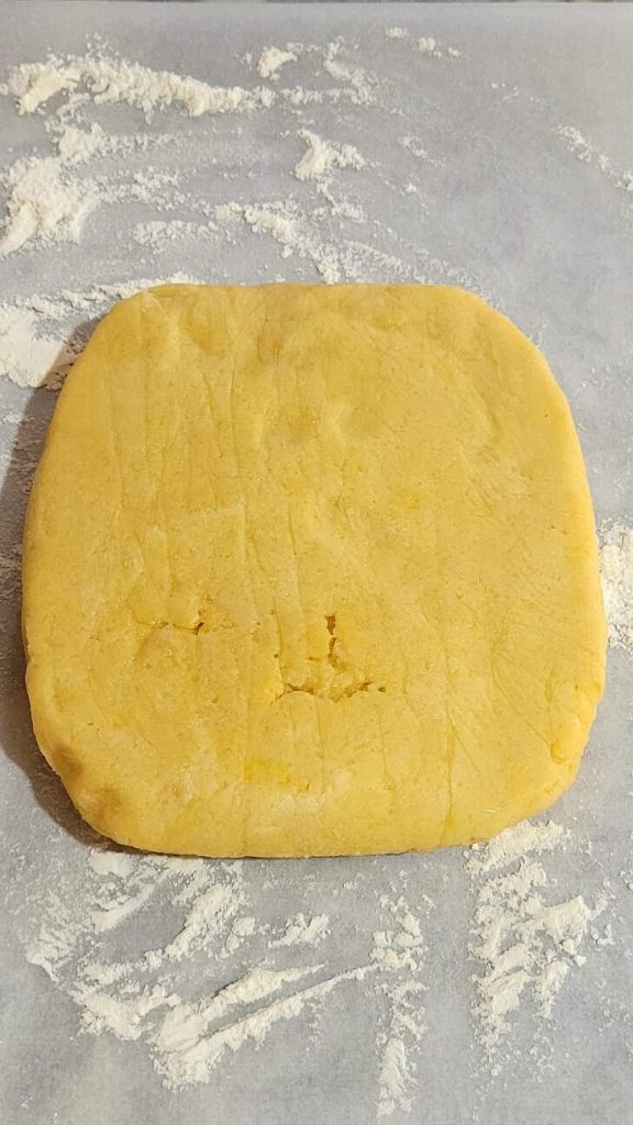 • Después del reposo en el frigorífico, coge la masa y extiéndela entre dos hojas de papel de horno enharinadas