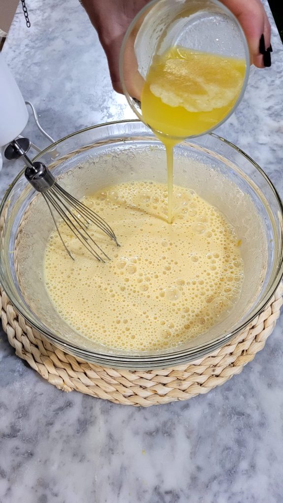 • Luego la mantequilla previamente derretida y amalgamad de nuevo con la batidora