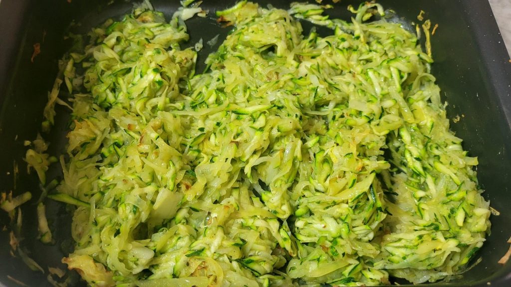 Si quieres puedes cocinar las verduras también en una sartén amplia y luego pasar a la cocción de la tarta salada en la freidora de aire