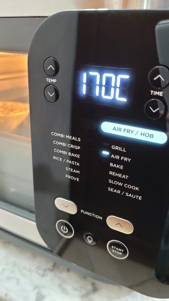 Ahora inicia el programa de cocción air fry a 170º x 15 minutos y hasta que estén doradas y crujientes