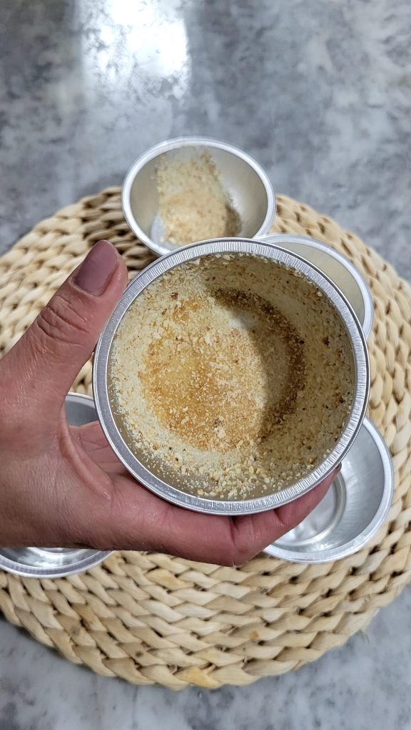 Cubre todos los moldes con la masa restante. Espolvorea la superficie con pan rallado y un chorrito de aceite de oliva virgen extra. Transfiérelos a la rejilla o bandeja de la freidora