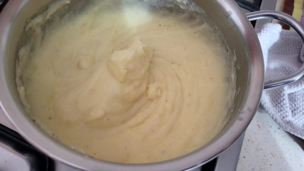 • Primero prepara el puré cocinando las patatas, después de pelarlas y cortarlas en trozos. Yo las he cocido al vapor en mi freidora de aire que también es una multicooker https://www.amazon.it/dp/B09K255389?tag=gz-blog-21&linkCode=osi&th=1&psc=1&ascsubtag=0-f-n-av_amichefriggyenonsolo