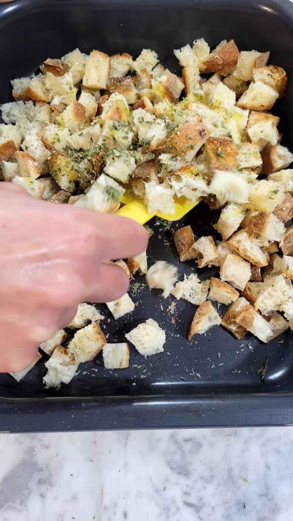 • Transfiere las tostadas a la freidora y cocina a 200° x 7 minutos, agitando el cajón un par de veces para una cocción homogénea