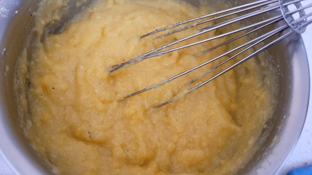 Vierte la polenta caliente en una bandeja rectangular, previamente engrasada. Deja enfriar durante 10/15 minutos