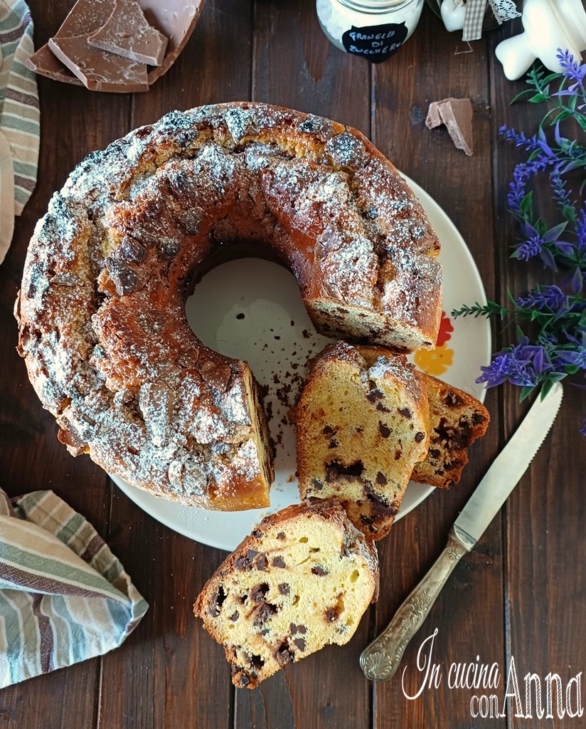 El bizcocho con trozos de chocolate es un dulce de despensa muy fácil de preparar, perfumado, muy suave y delicioso. Un dulce de esos rápidos que se mezcla con las batidoras eléctricas en 5 minutos, se añade el chocolate troceado y luego directamente al horno, tiempo de cocción y sacaréis un bizcocho lleno de trocitos de chocolate de los más suaves y buenos que jamás hayáis probado.