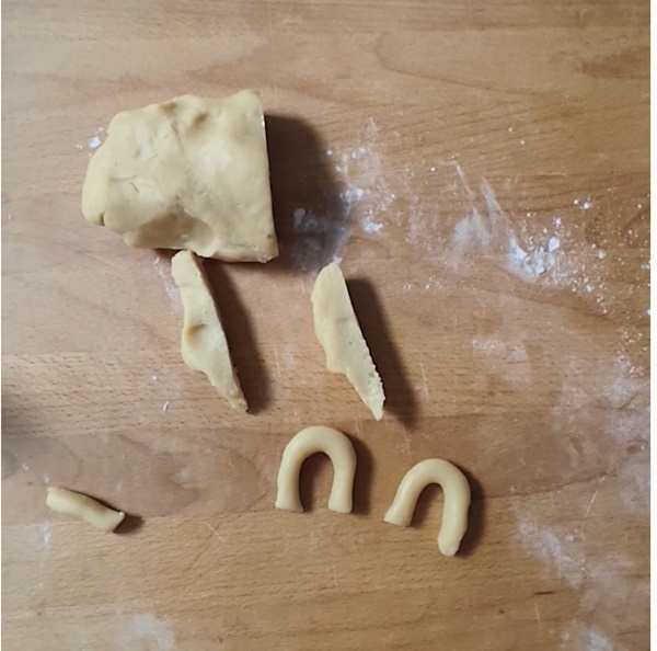 Ahora podemos hacer la última forma, retoma todos los recortes y amásalos rápidamente.