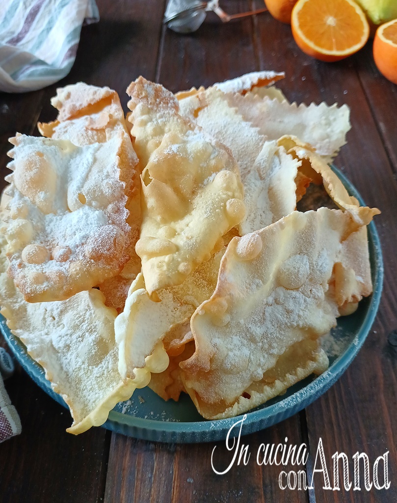 Las chiacchiere son el dulce por excelencia del carnaval, cada región italiana tiene su receta tradicional, más gruesas, más crujientes, más finas y un modo diferente de llamarlas, en Toscana tenemos los Cenci de carnaval toscanos, unas láminas de masa muy ligeras, muy secas, crujientes, ligeras y con burbujas, el vin santo les otorga un aroma y sabor únicos además de hacerlas muy deliciosas, uno de esos dulces que hay que probar.