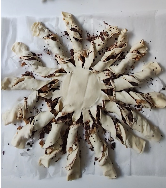 • Transferir la flor de hojaldre a la bandeja del horno.