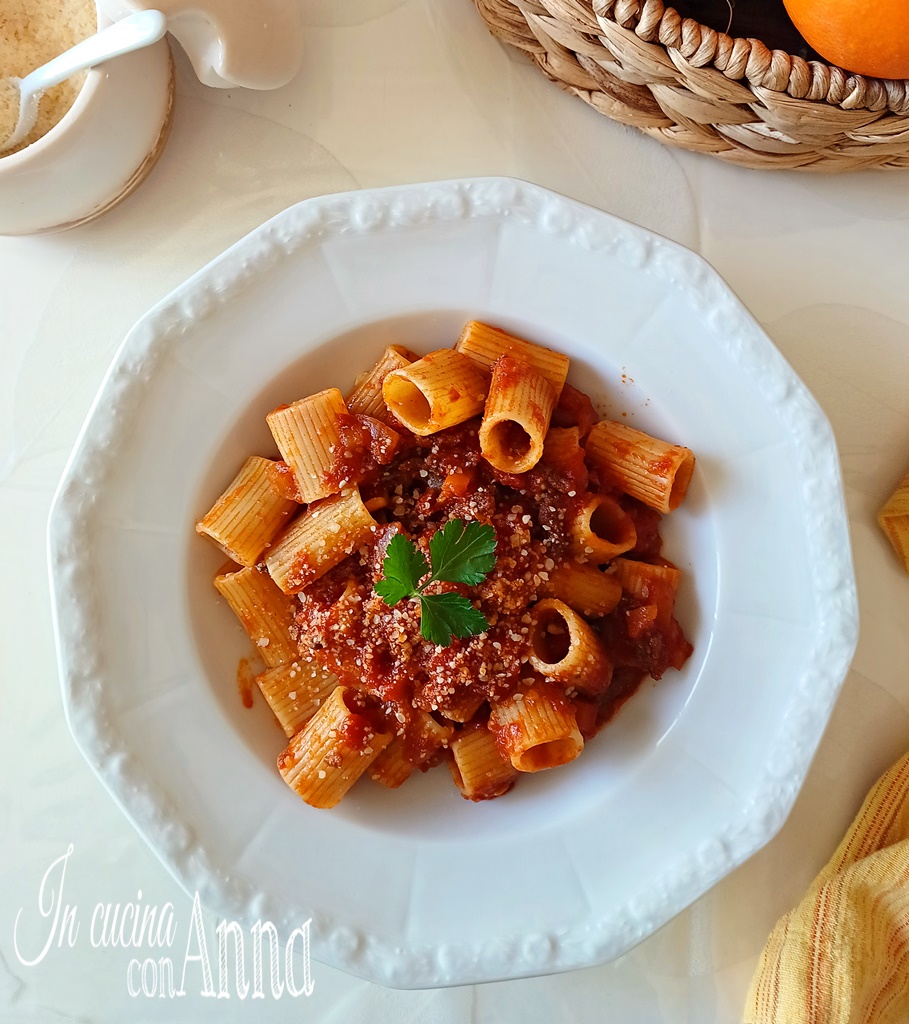 La pasta al ragú vegetariano es un primer plato muy sencillo de preparar, económico, sabroso y delicioso, un plato ligero, pero sustancioso, rico en sabor incluso si se necesitan pocos ingredientes 🙂