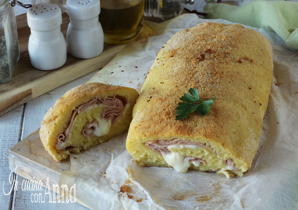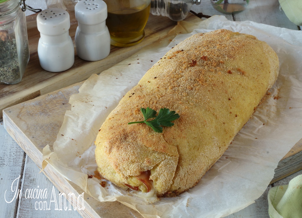 El rollo de patatas relleno con mortadela y scamorza está listo para ser servido… ¡Buen provecho!