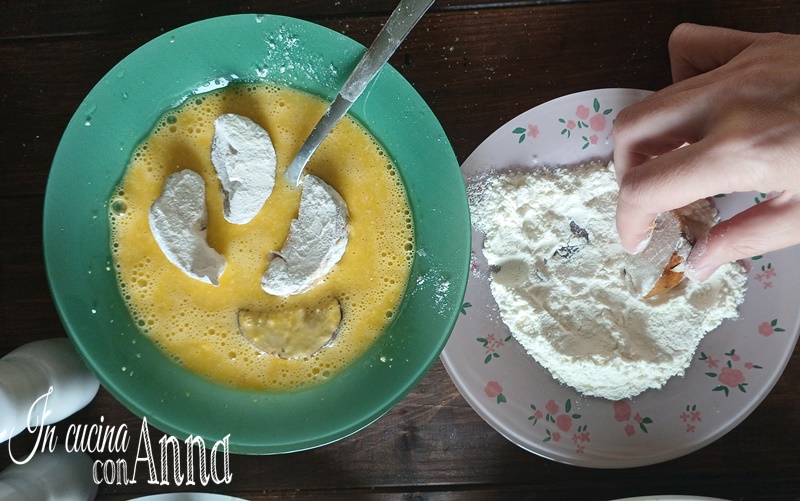 Continúen empanando las setas de la misma manera: harina, huevo, pan rallado hasta que estén todas listas.
