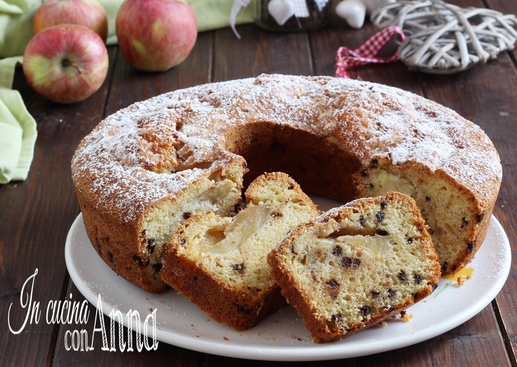 La tarta de manzana con chispas de chocolate es un dulce muy esponjoso como una nube, genuino y muy delicioso, se prepara en 5 minutos y durante el tiempo de cocción en el horno tendrás una tarta muy fragante, perfecta para toda la familia. Pruébala, te conquistará al primer bocado.