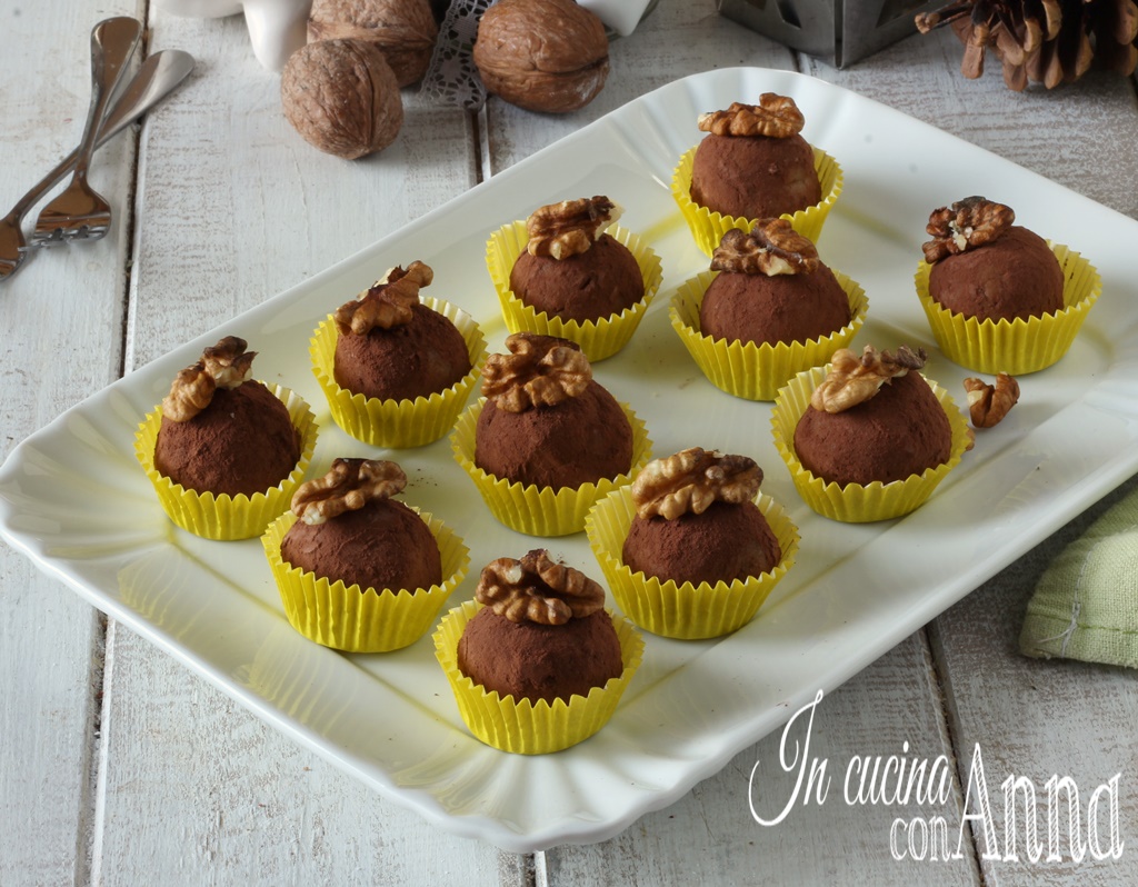 Estas trufas de nueces y chocolate son perfectas para cualquier ocasión, incluso servidas en un buffet serán un éxito y desaparecerán en un instante.
