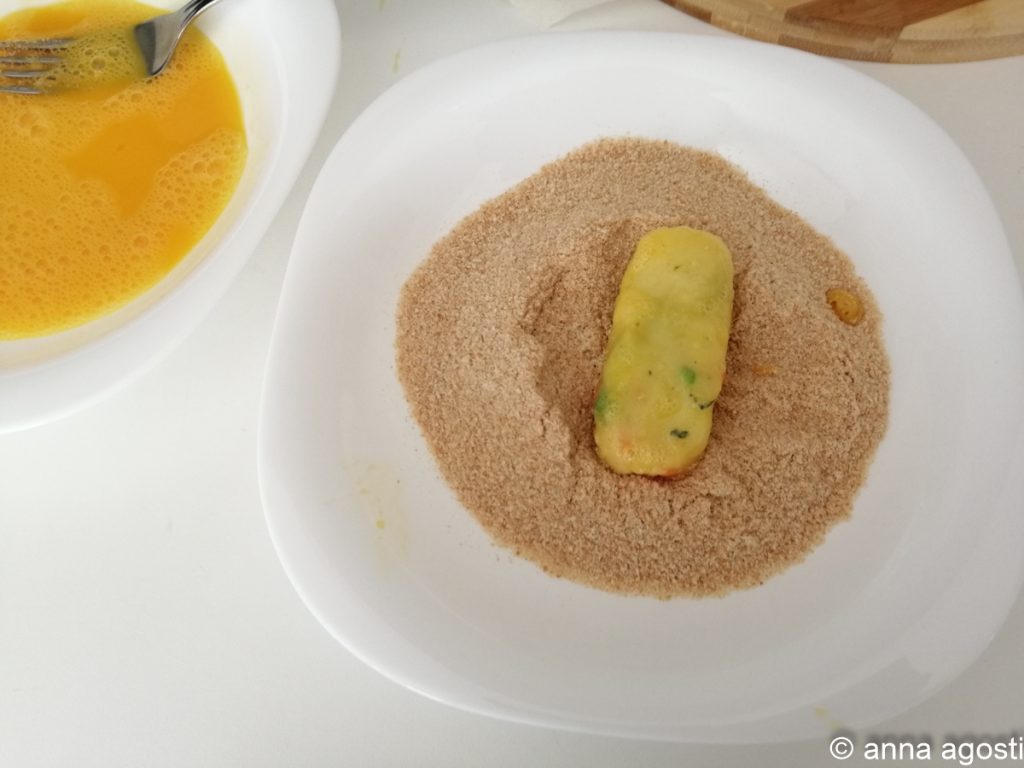 Salpimenta y deja enfriar. Mientras tanto, bate el huevo en un plato hondo.