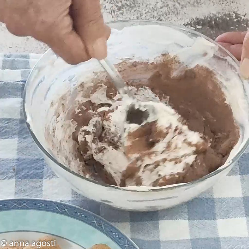 Mezclar el mascarpone con la nata montada con movimientos delicados de abajo hacia arriba.