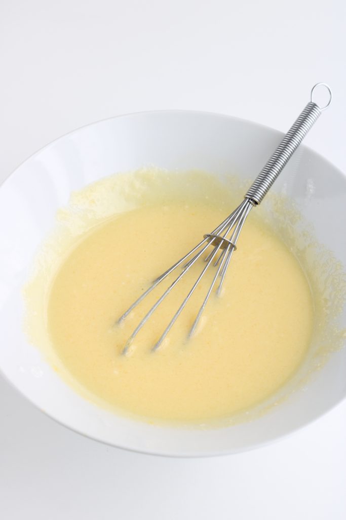 Suaviza la masa vertiendo un poco de leche, luego añade la cáscara rallada de un limón no tratado y mezcla los ingredientes hasta obtener una mezcla homogénea.