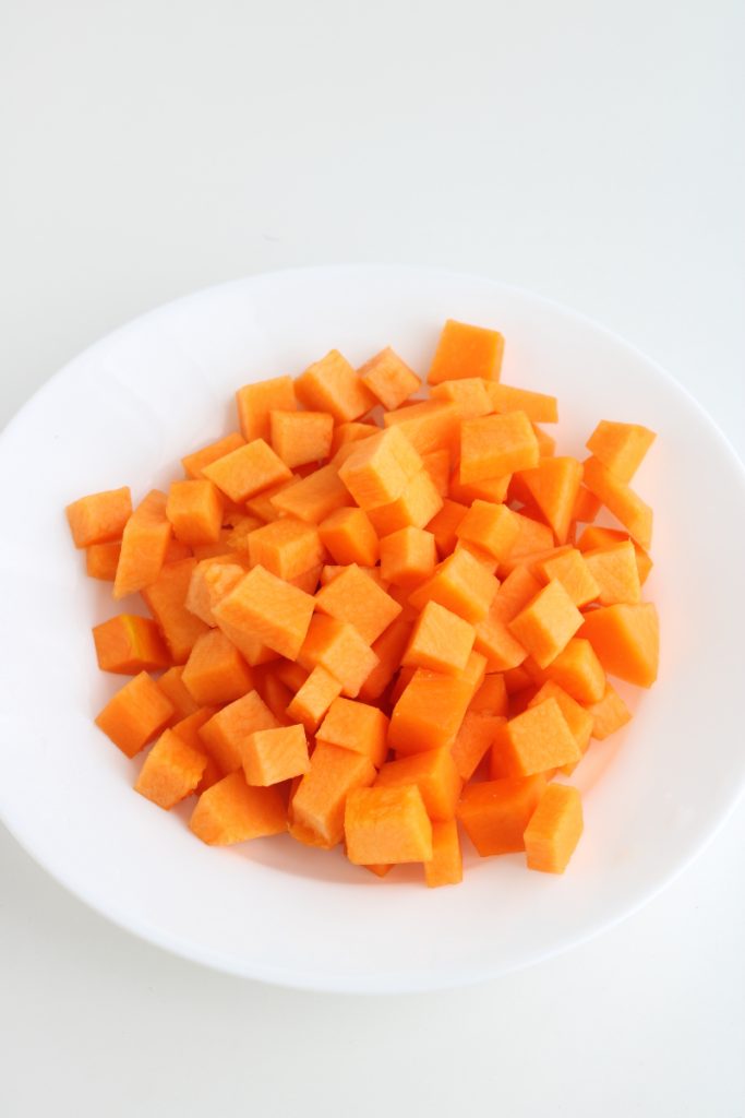 Por último, os recuerdo que tenéis que prestar atención a la cocción de la calabaza, que no debe estar deshecha (el tiempo de cocción puede variar ligeramente dependiendo del tamaño de los cubitos cortados).