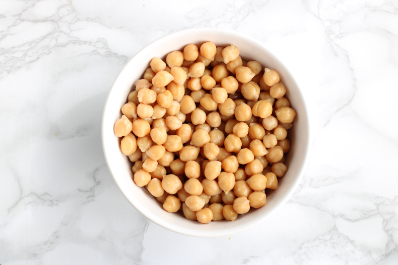 Escurre los garbanzos cocidos de su agua, para hacerlo más rápido puedes usar también los que ya están listos en tarro.