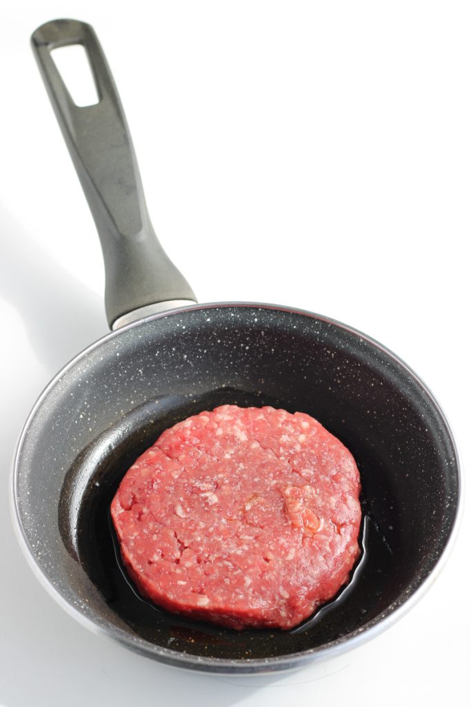 • En una sartén antiadherente calienta ligeramente un chorrito de aceite y coloca las hamburguesas.
