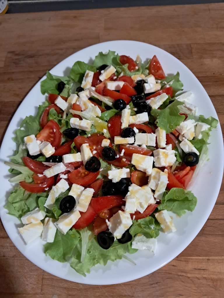 Y voilà… la ensalada con feta y tomatitos está lista para llevar a la mesa.
