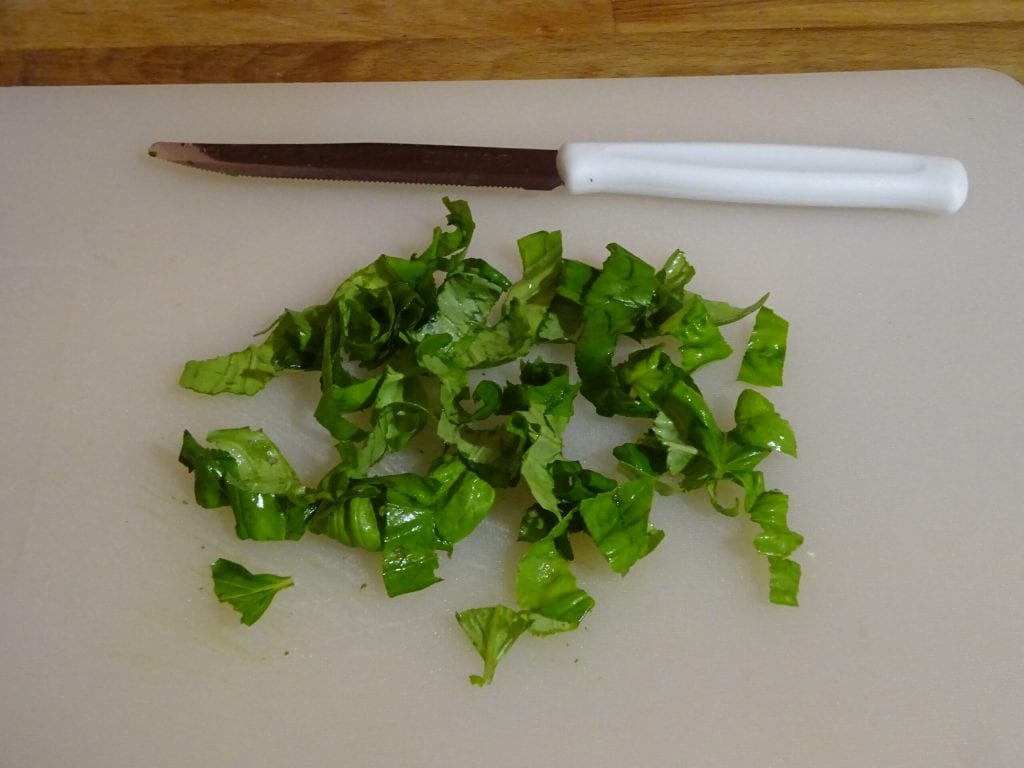 Luego añade también la albahaca. Mezcla bien todo y ajusta de sal.