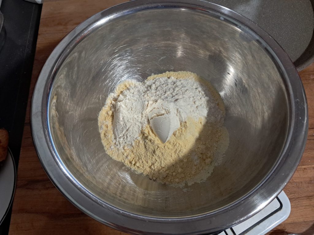 • Vierte en un bol la harina de garbanzos y la harina 00.
