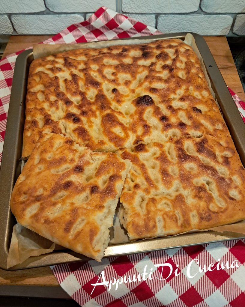 • Y voilà… la focaccia dulce de Alessandria está lista para ser cortada en piezas y servida para merendar o por qué no también para desayunar.