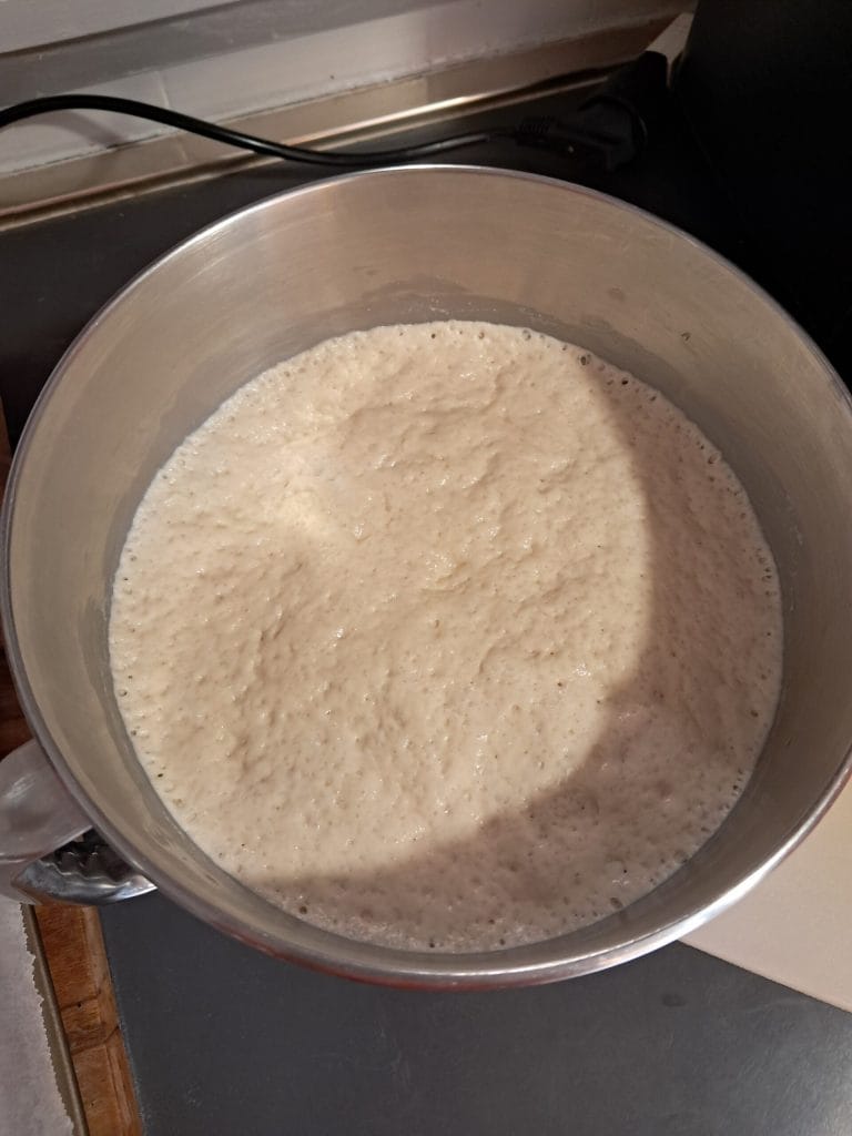 • En el bol de la amasadora, vierte la harina 0 y la levadura de cerveza.