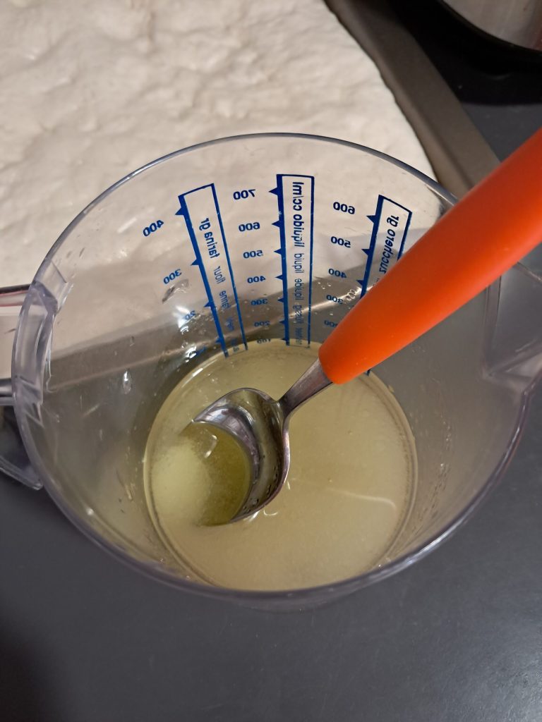 • Después de 30 minutos, prepara la salmuera con agua, aceite y azúcar.