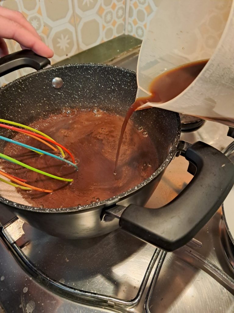 • Una vez que el jarabe de azúcar, café y canela esté listo, retira del fuego y deja enfriar 5 minutos.