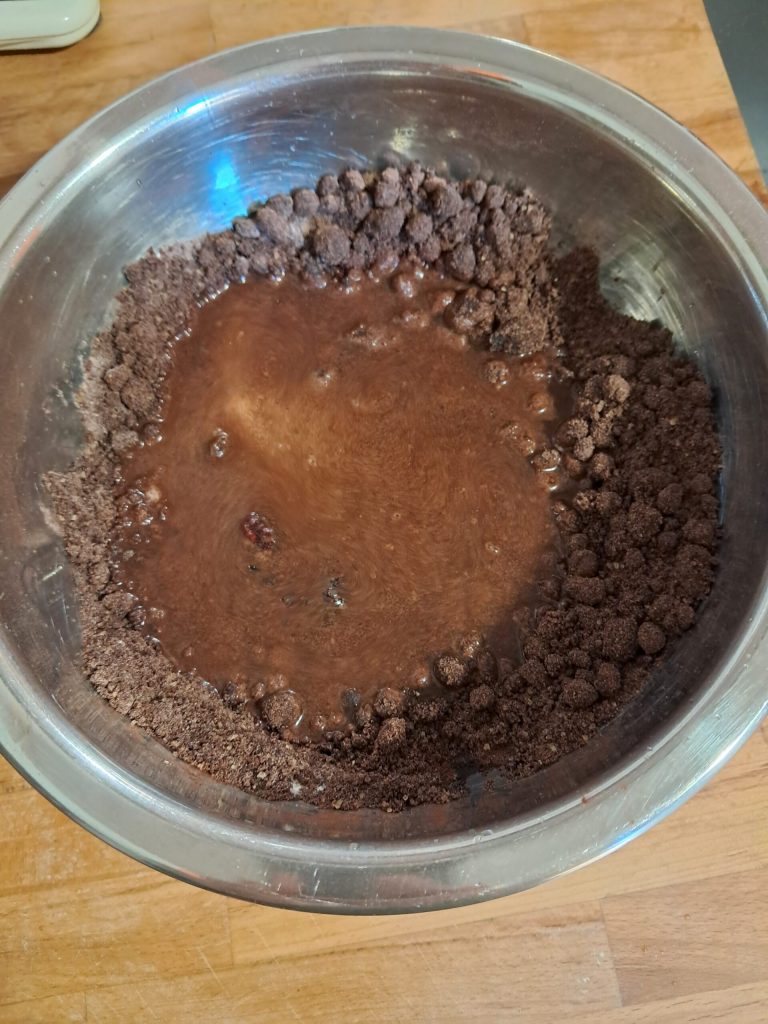 Preparación de muffins de agua con cacao y arándanos rojos