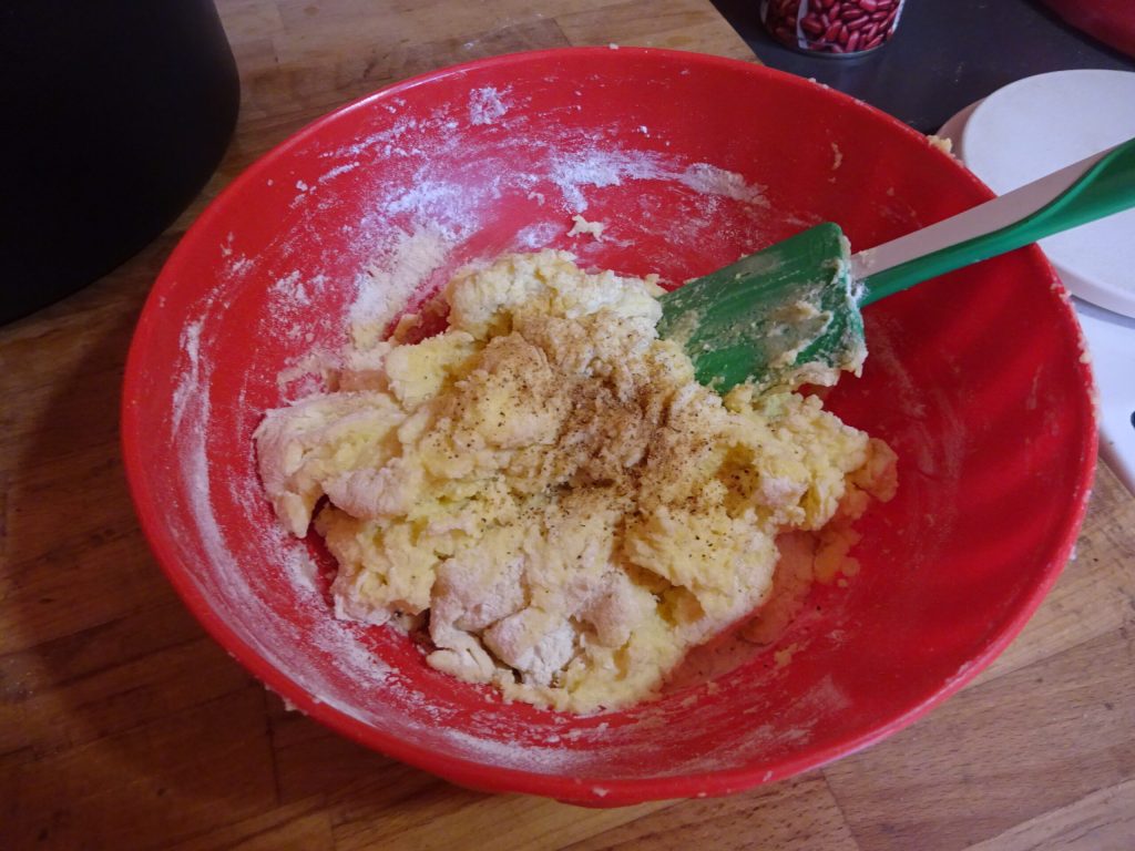 Finalmente añade una pizca de sal y una pizca de nuez moscada. Mezcla para amalgamar bien.