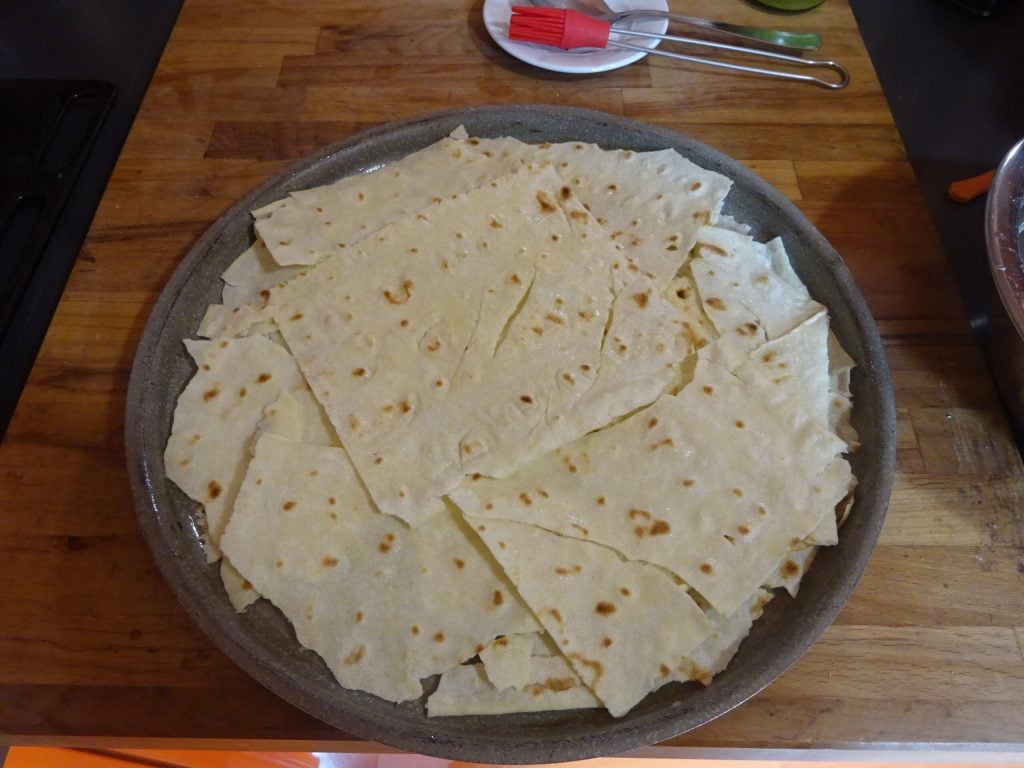 • Humedecer las hojas restantes de carasau y hacer la capa de cobertura.