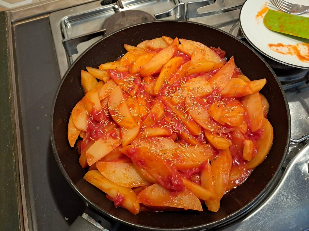 Y voilà… ahora las patatas al tomate están listas para servir.