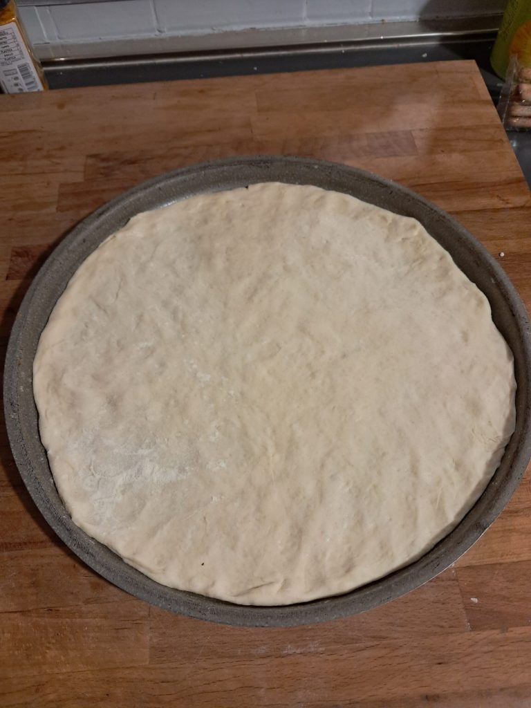 Transcurridas las 3 horas de fermentación, estira las masas de forma uniforme, cubre y deja fermentar otra hora más.