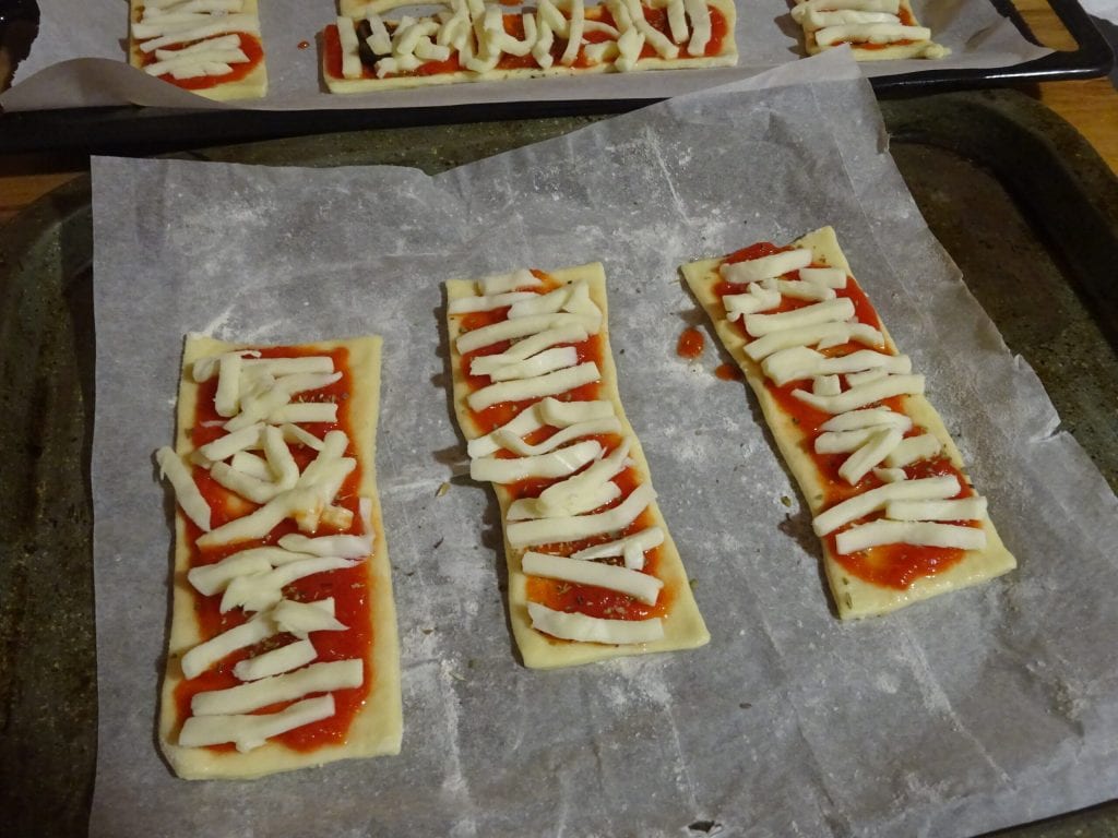 Preparación Pizzetas momia de Halloween