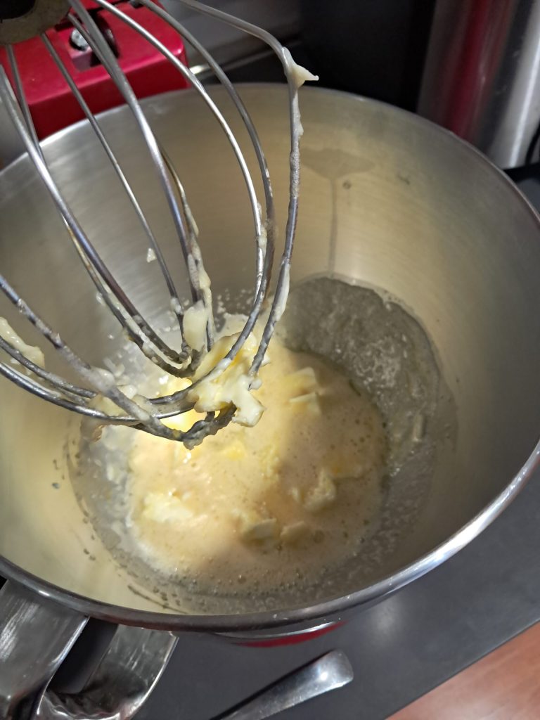 Añade ahora la mantequilla ablandada y trabaja hasta obtener una mezcla lisa y espumosa.