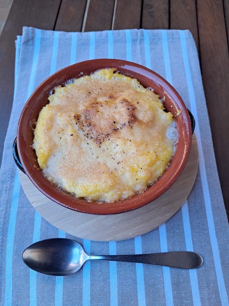 • Y voilà… la polenta y queso gratinado al horno está lista para ser llevada a la mesa.