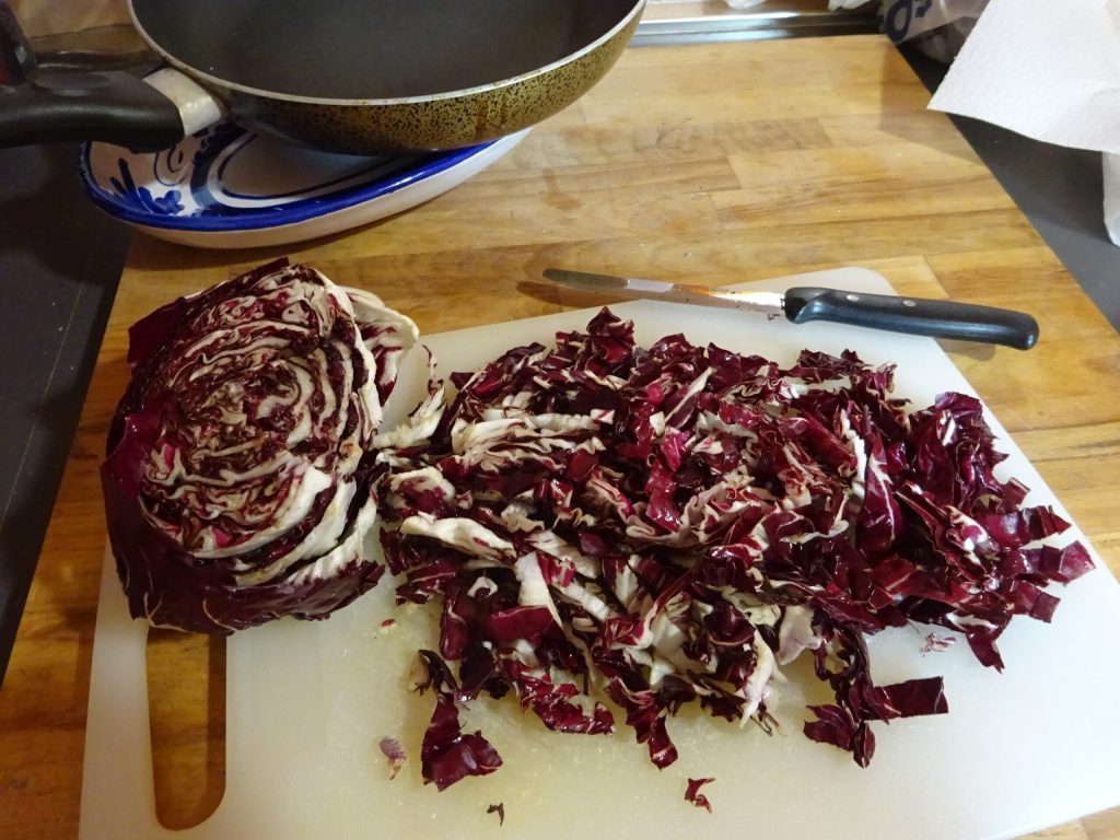 Corta el radicchio en tiras de aproximadamente medio centímetro de ancho.