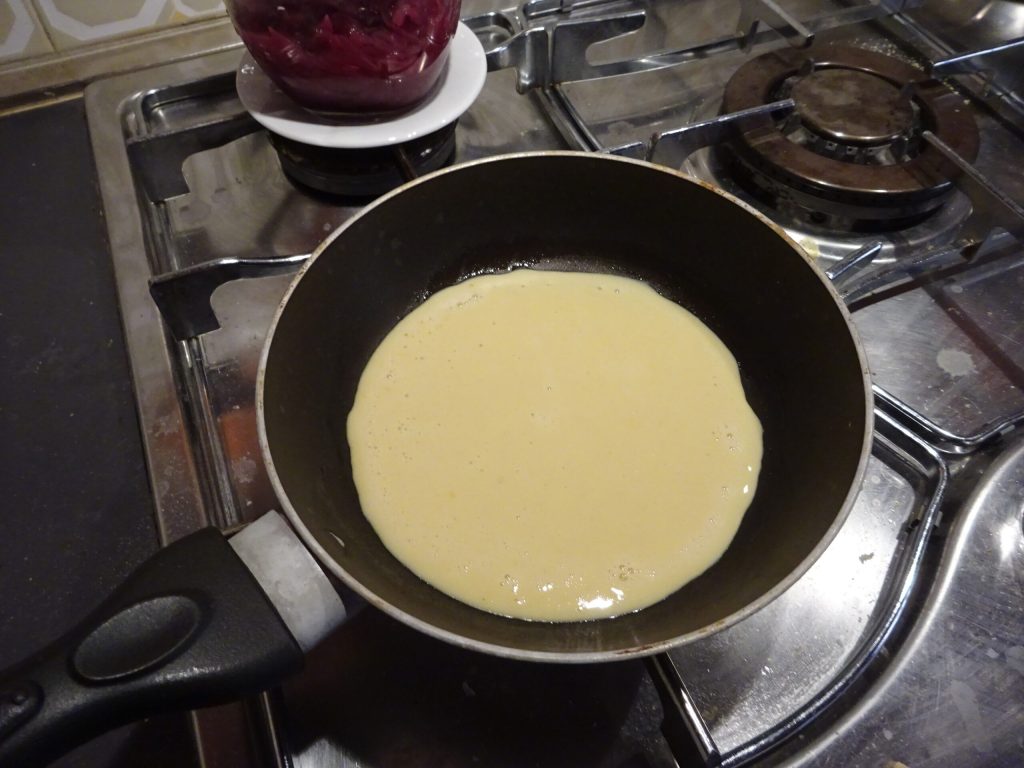 Calienta una sartén pequeña ligeramente engrasada con aceite de girasol.