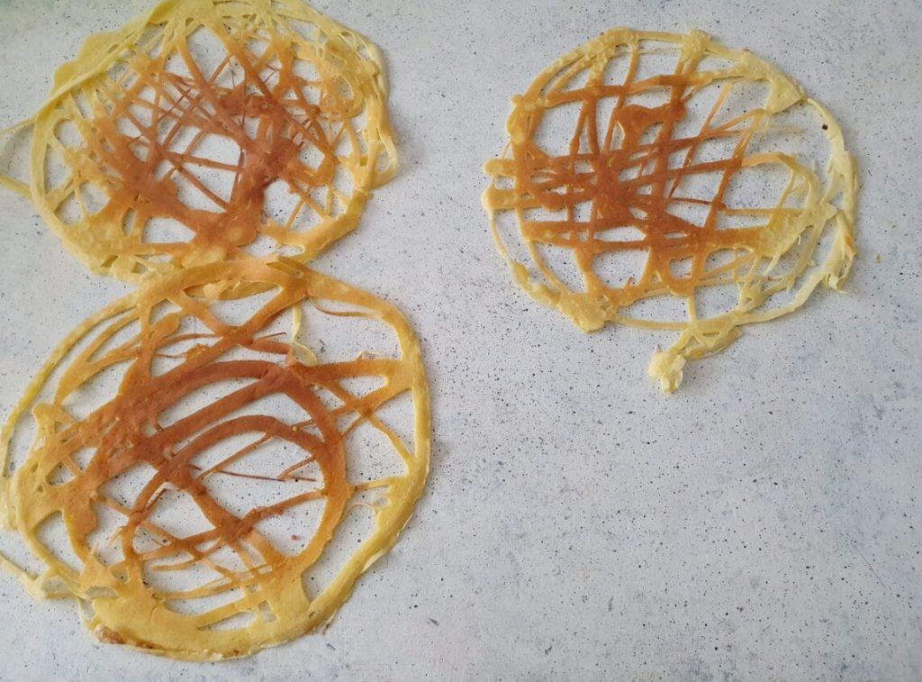 Continuo haciendo círculos de encajes de crepes, hasta terminar la masa.