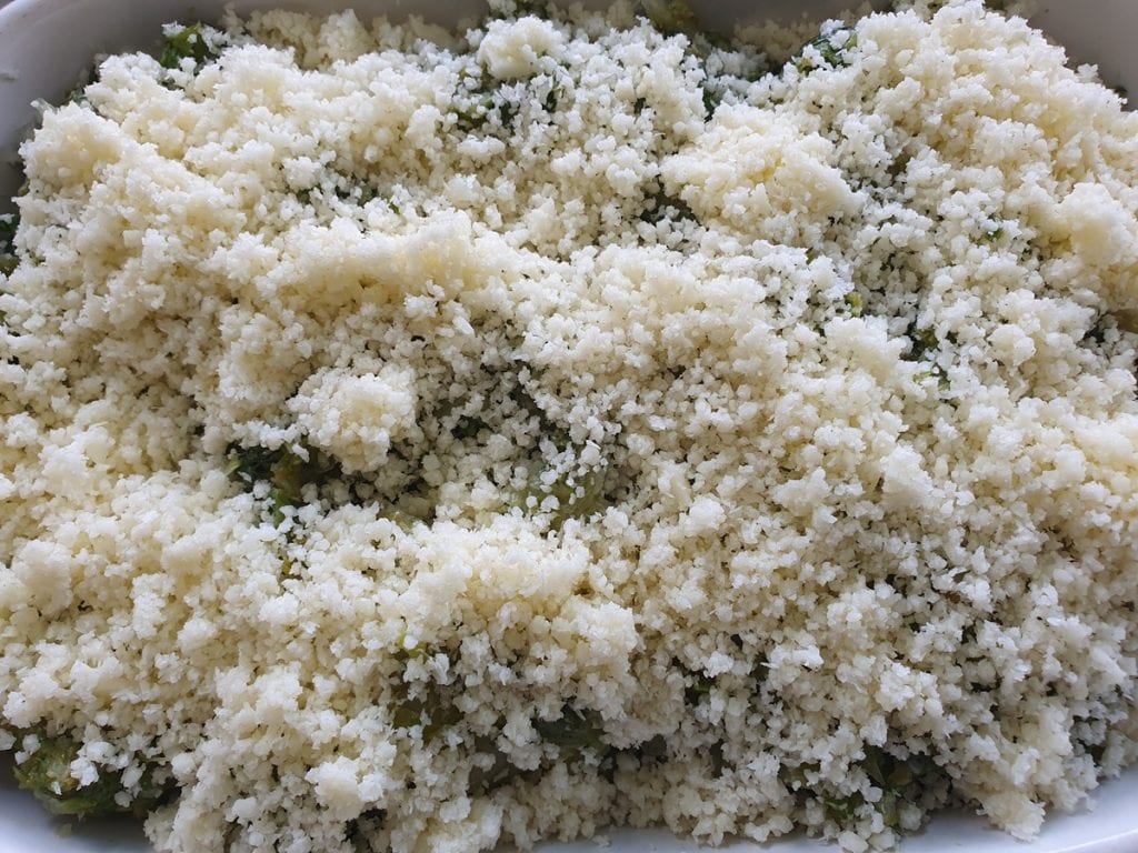 Bato el huevo entero con la leche, la sal, una pizca de nuez moscada y vierto todo sobre la preparación recién hecha.