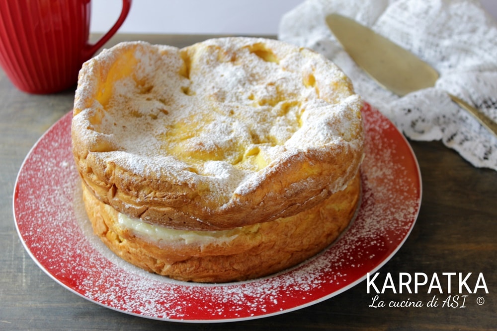 Buen provecho con la tarta polaca KARPATKA un nombre que recuerda a los CÁRPATOS, una cadena montañosa, para recordar el estado irregular de las bases.