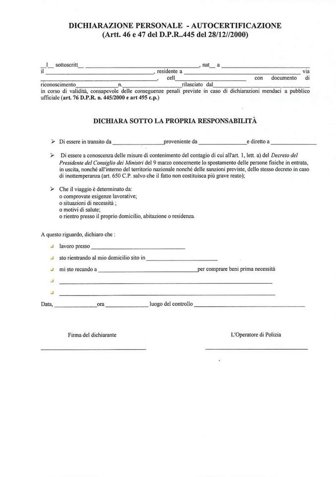 • AUTOCERTIFICACIÓN PARA DESPLAZAMIENTOS EN TODA ITALIA