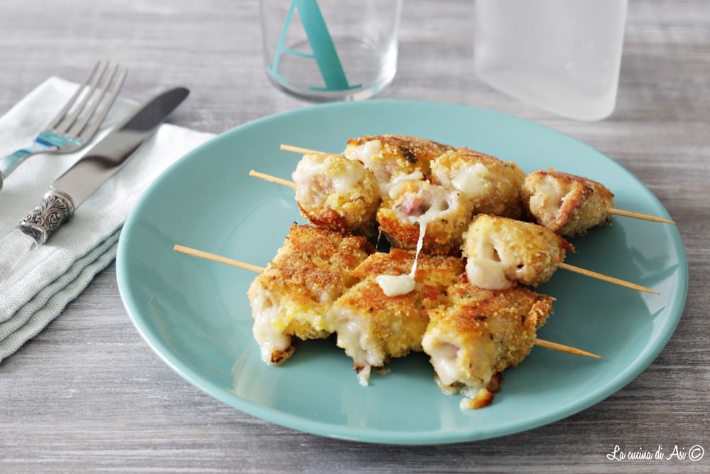 La cocción al horno hace que los pinchos con rollitos de cerdo empanados sean crujientes con el gratinado y realmente muy sabrosos.