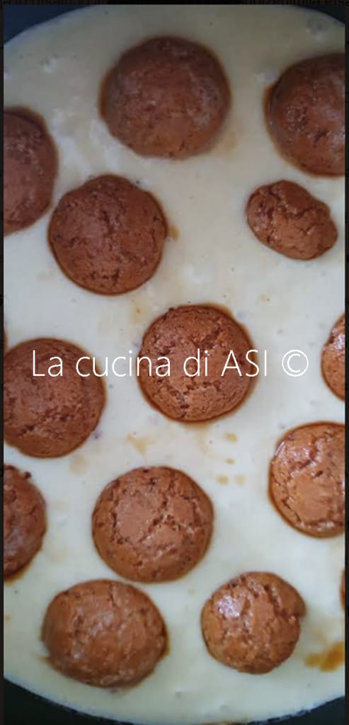 La combinación de café y amaretti es intrigante y muy deliciosa, y recomiendo poner muchos amaretti porque durante la cocción se dispersarán por la tarta y será una sorpresa morder algunos en el momento de la degustación.